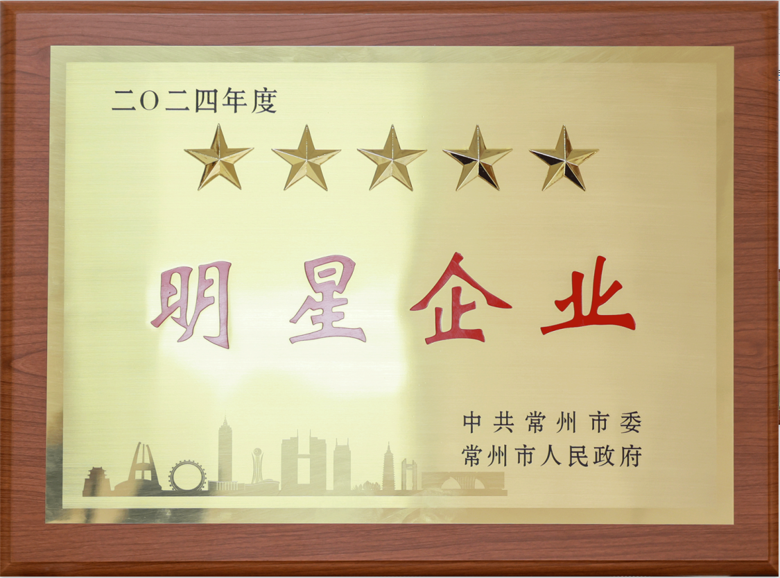 2024年荣获常州市五星级明星企业荣誉证书