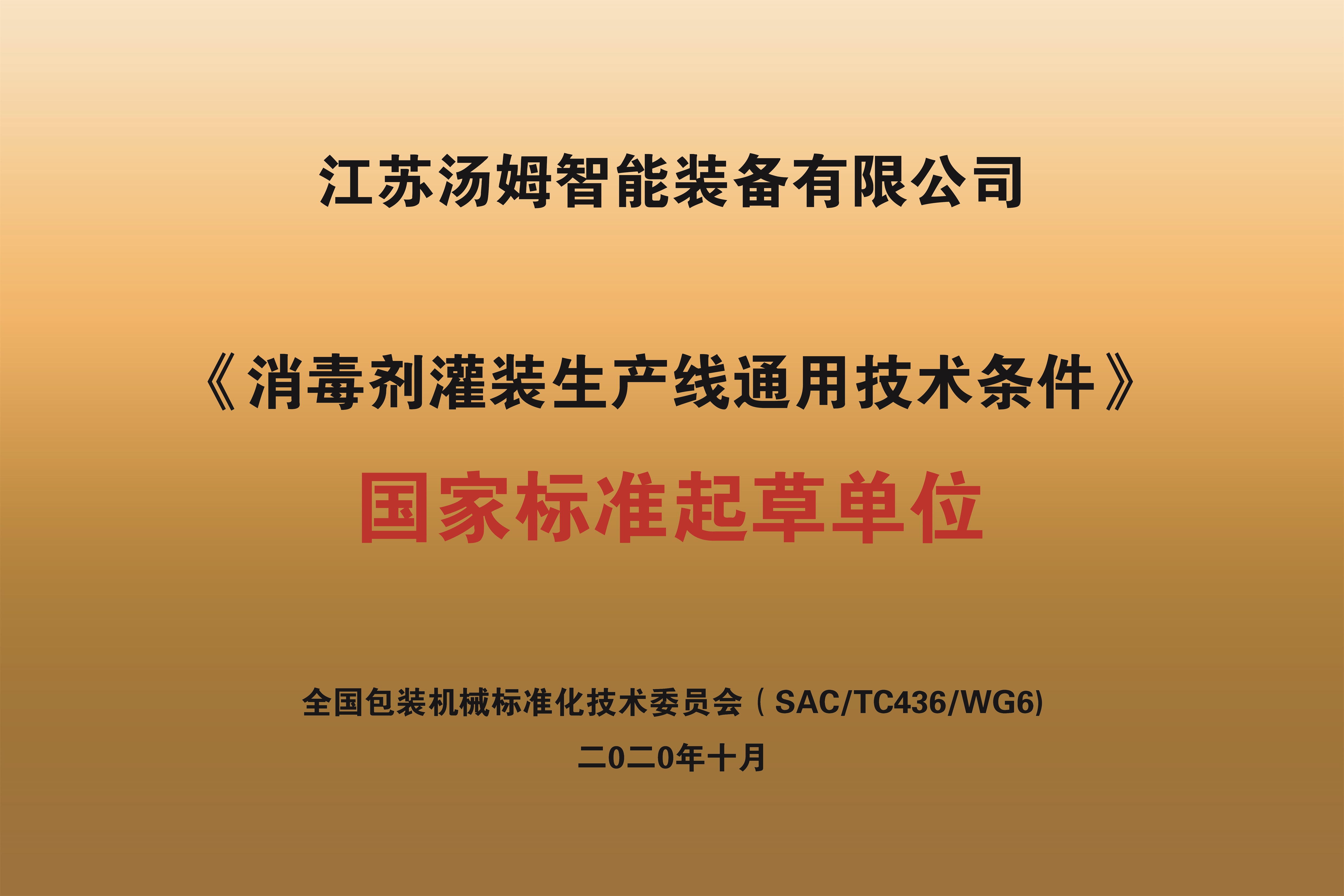 消毒剂灌装设备标准工作组